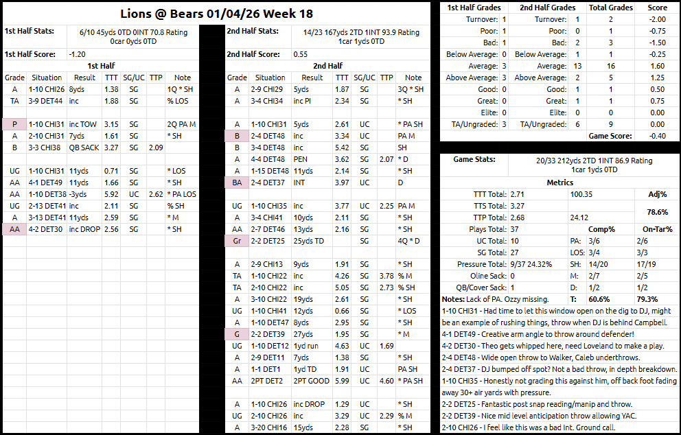 Caleb Williams Week 18 QB Grade: Bears vs. Lions