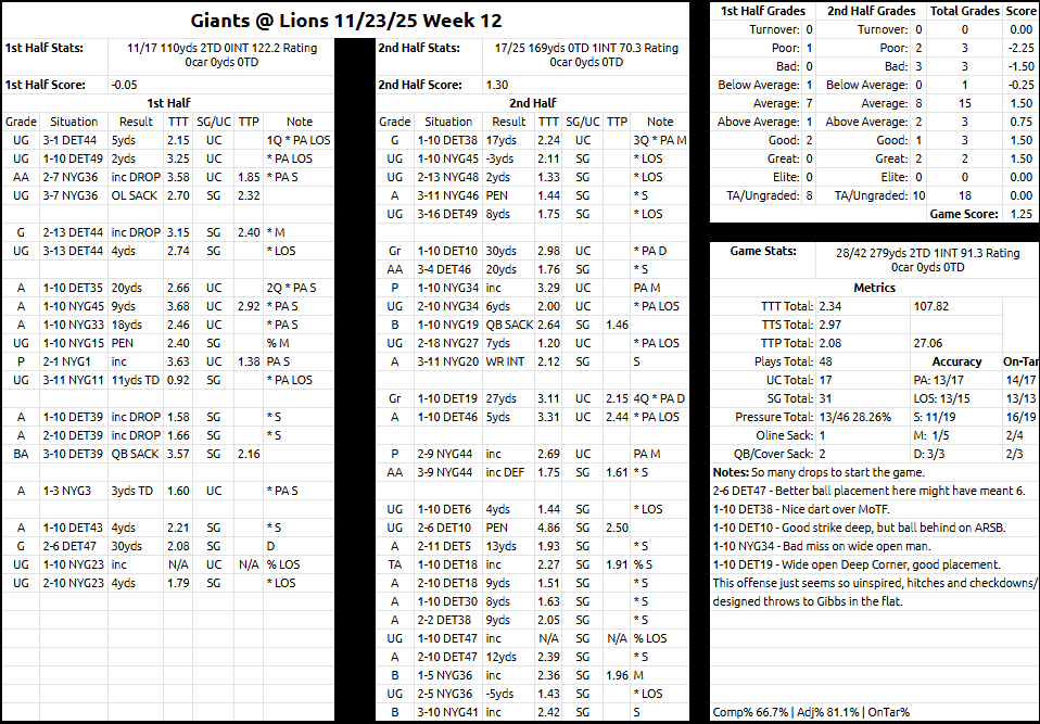 Jared Goff Week 12 QB Grade: Lions vs Giants