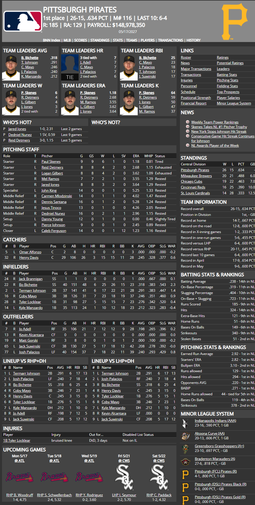 Pittsburgh Pirates Rebuild - 2027 1st Quarter Check-In